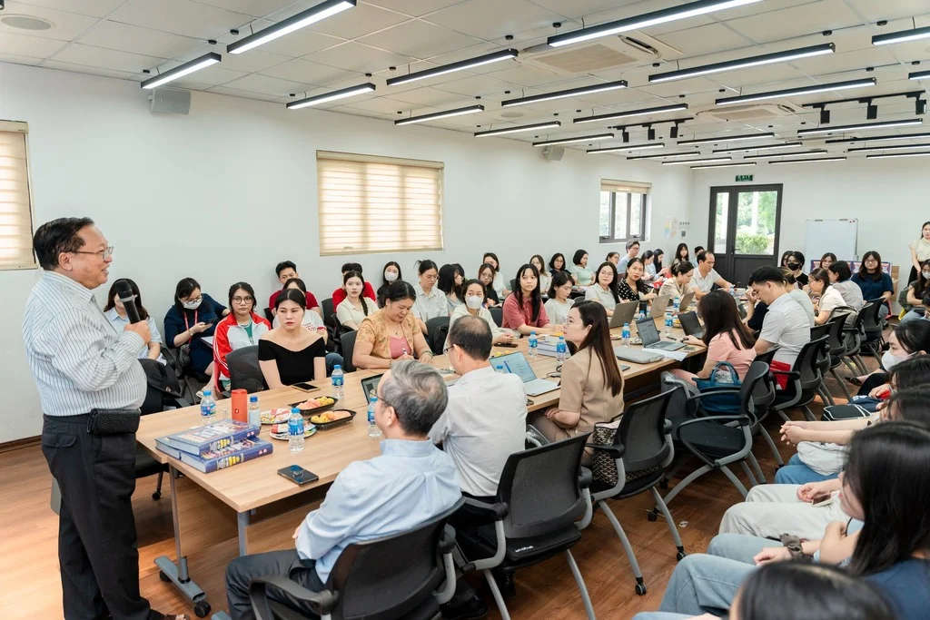 Trong không khí chia sẻ và đối thoại cởi mở, GS. Hà Tôn Vinh đã chia sẻ những câu chuyện thực tế từ kinh nghiệm hơn 30 năm làm việc toàn cầu, giúp sinh viên hiểu sâu hơn về tầm quan trọng của việc học tập suốt đời và đầu tư phát triển nguồn nhân lực – yếu tố then chốt để doanh nghiệp và quốc gia bứt phá trong kỷ nguyên cạnh tranh.