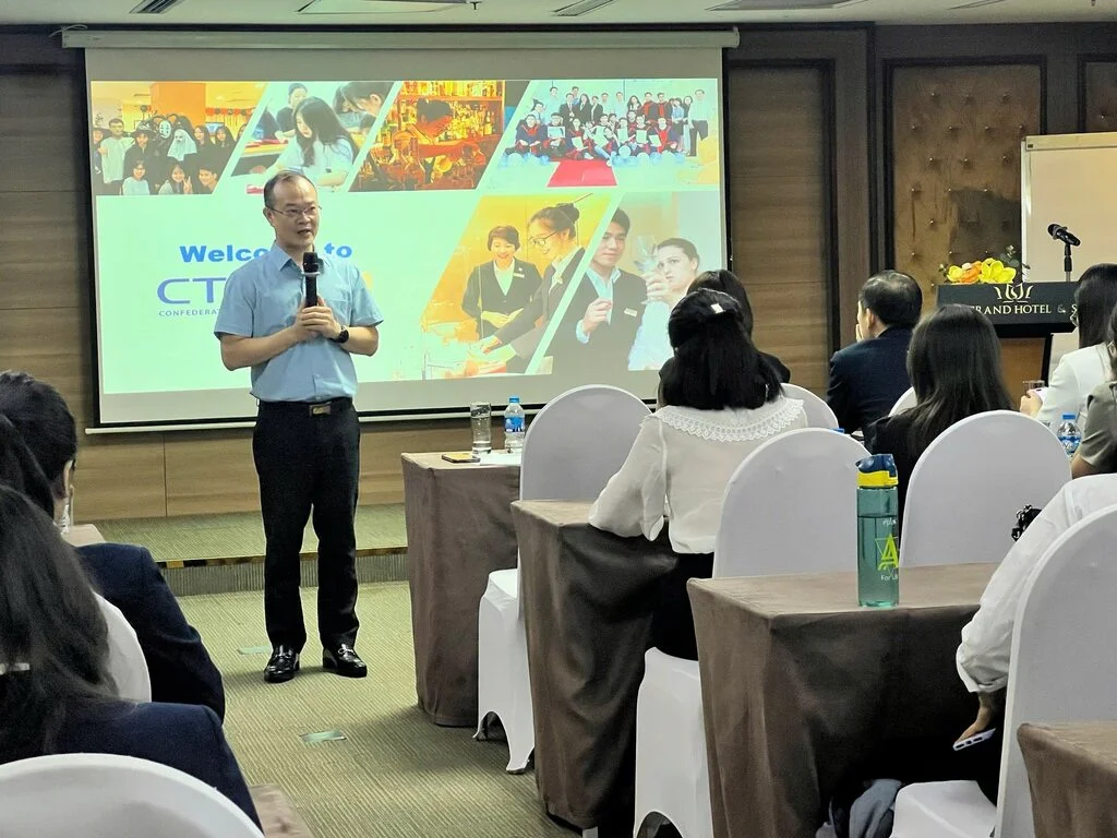 Sáng ngày 03/09/2025, tại khách sạn Sen Grand Hotel, Khoa Quản trị Kinh doanh – Trường Đại học Ngoại Thương kết hợp với Học viện quốc tế đào tạo chứng chỉ CTH tại Việt Nam và khách sạn Sen Grand Hotel & Spa long trọng tổ chức Lễ khai giảng các học phần thực hành nghiệp vụ khách sạn lấy chứng chỉ quốc tế CTH dành cho sinh viên K63 ngành Quản trị Khách sạn. Buổi lễ nhằm giới thiệu mục tiêu, nội dung khóa học và những điểm mới trong đào tạo nhằm gia tăng động lực để các bạn sinh viên sẵn sàng bước vào hành trình trải nghiệm thực tế chuyên nghiệp.