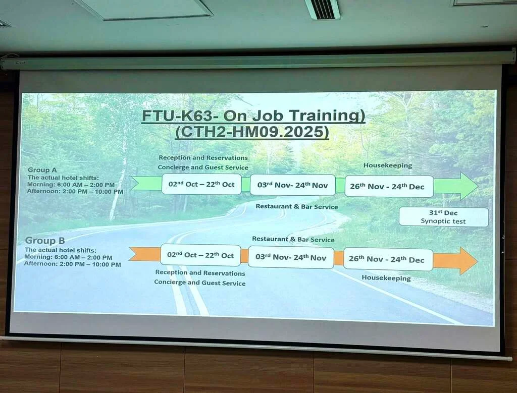 Nằm trong chương trình đào tạo ngành QTKS của trường ĐH Ngoại Thương, vào năm thứ 2, các em sinh viên được tham gia 4 học phần thực hành nghiệp vụ bao gồm: Customer Service Skills, Reception and Reservations, Concierge and Guest Service; Restaurant & Bar Service; Housekeeping kéo dài 04 tháng từ tháng 9 đến tháng 12 năm 2025. Khóa học trang bị cho sinh viên kỹ năng giao tiếp chuyên nghiệp với khách hàng, kỹ năng đặt phòng và đón tiếp khách, kỹ năng phục vụ tại nhà hàng – quầy bar, kỹ năng buồng phòng chuẩn 4-5 sao, kiến thức về quy trình vận hành khách sạn quốc tế. Kết thúc khóa học, sinh viên tham dự kỳ thi đánh giá để nhận Chứng chỉ CTH Level 2.