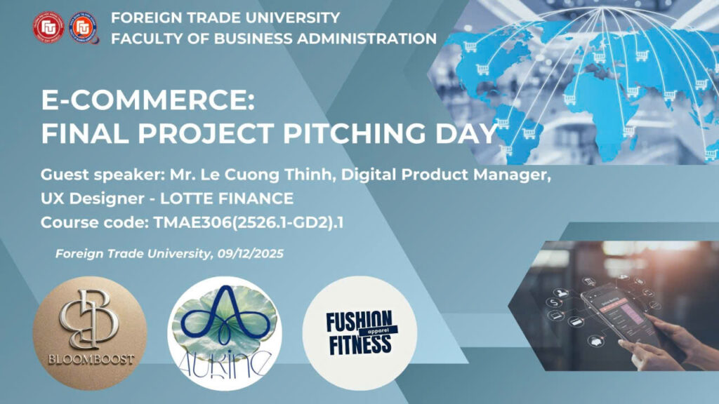 Chiều ngày 09/12/2025 tại trường Đại học Ngoại thương, sinh viên chương trình K62 Chất lượng cao khoa Quản trị Kinh doanh đã có buổi thuyết trình dự án thương mại điện tử, và giao lưu cùng Anh Lê Cường Thịnh – Quản lý sản phẩm số tại LOTTE Finance, đồng thời là cựu sinh viên FTU khóa 2003 – 2007.