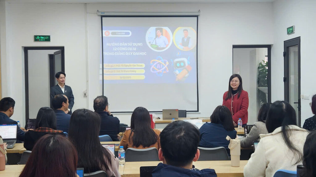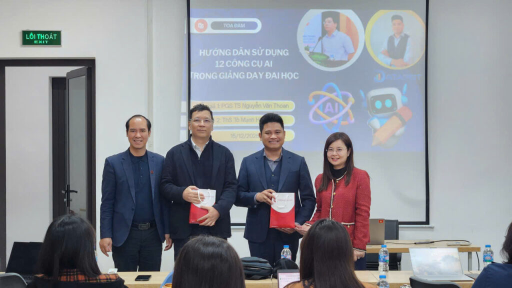 Ngày 15/12/2025, tại Trường Đại học Ngoại thương, Khoa Quản trị Kinh doanh đã tổ chức Toạ đàm “Hướng dẫn sử dụng 12 công cụ AI trong giảng dạy đại học” với hai phần trình bày của PGS, TS Nguyễn Văn Thoan, Giám đốc Trung tâm Công nghệ thông tin Trường Đại học Ngoại thương và ThS Tô Mạnh Hoàng, CEO Datapot Data Analytics Group.